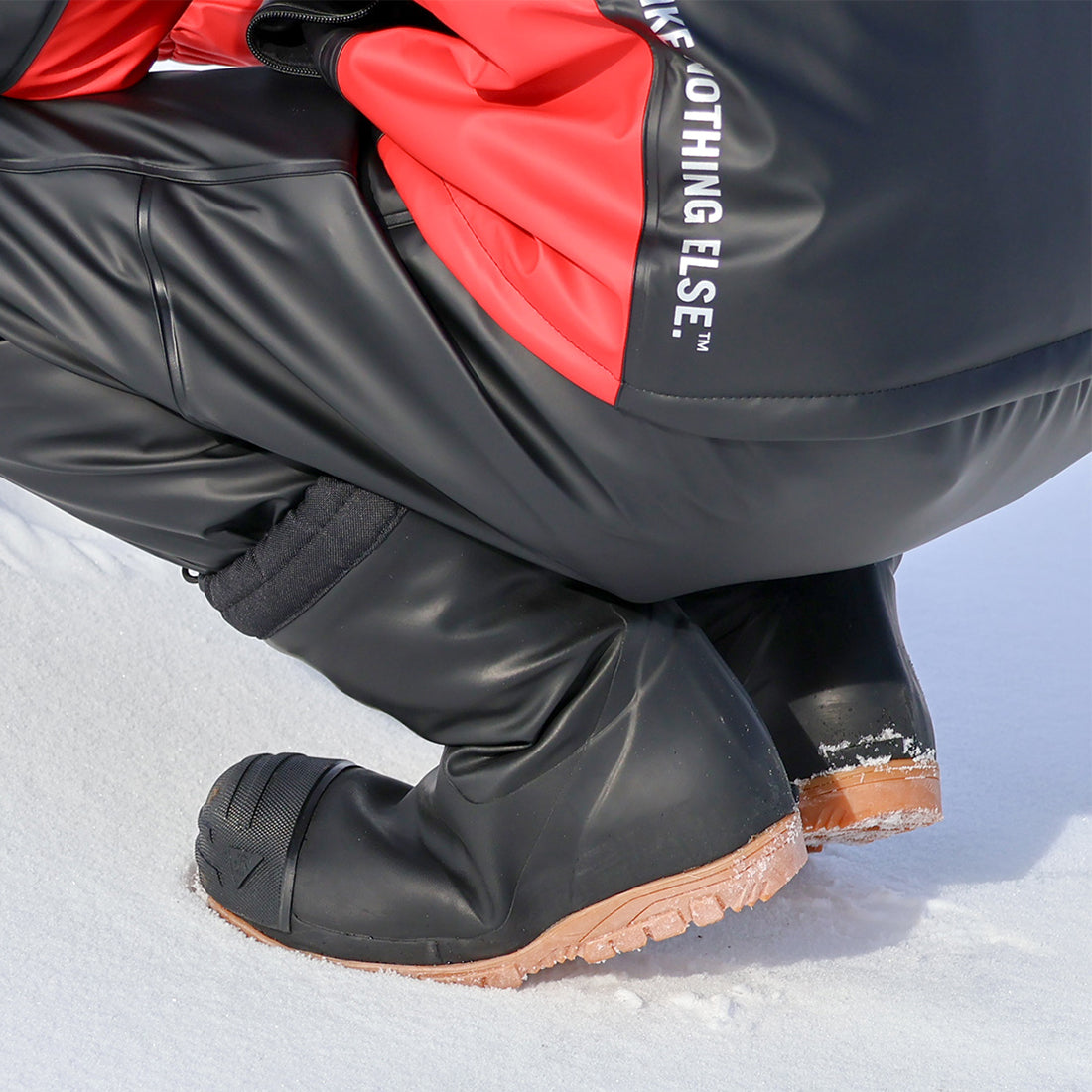 特殊配合の柔らかいゴムを使用。-60℃環境でも硬くならず、重機のペダル操作やしゃがみ作業がスムーズ。従来品の「硬くて動きにくい」を解消。