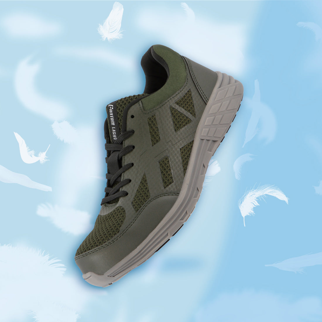 ランニングシューズをイメージした、スポーティデザインのワークシューズ。