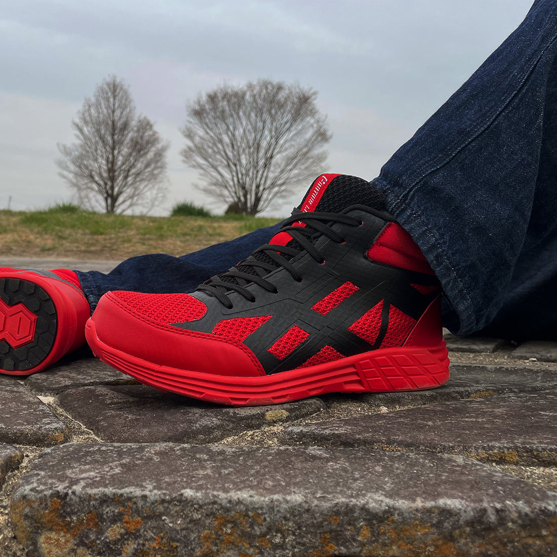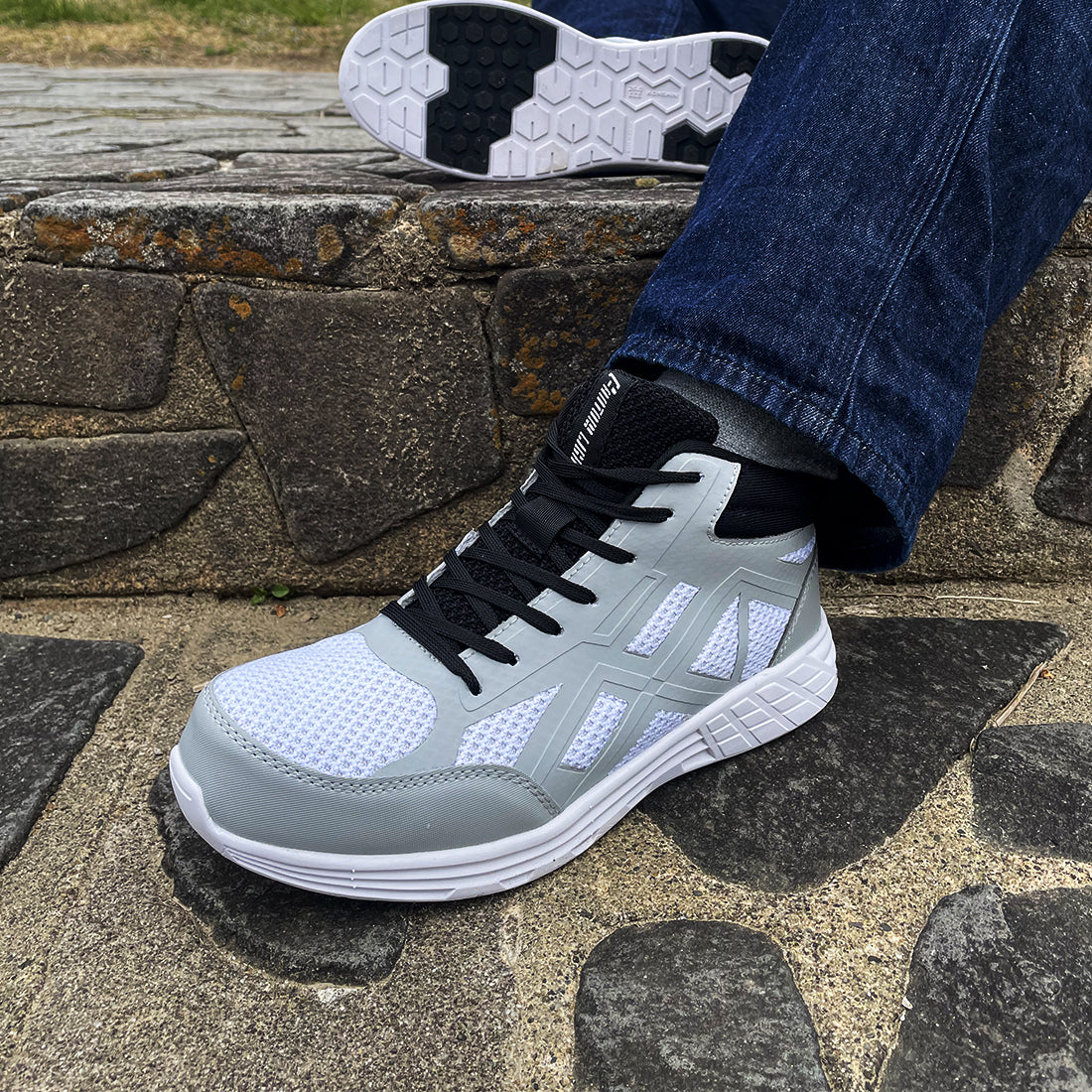 ランニングシューズをイメージした、スポーティデザインのワークシューズ。