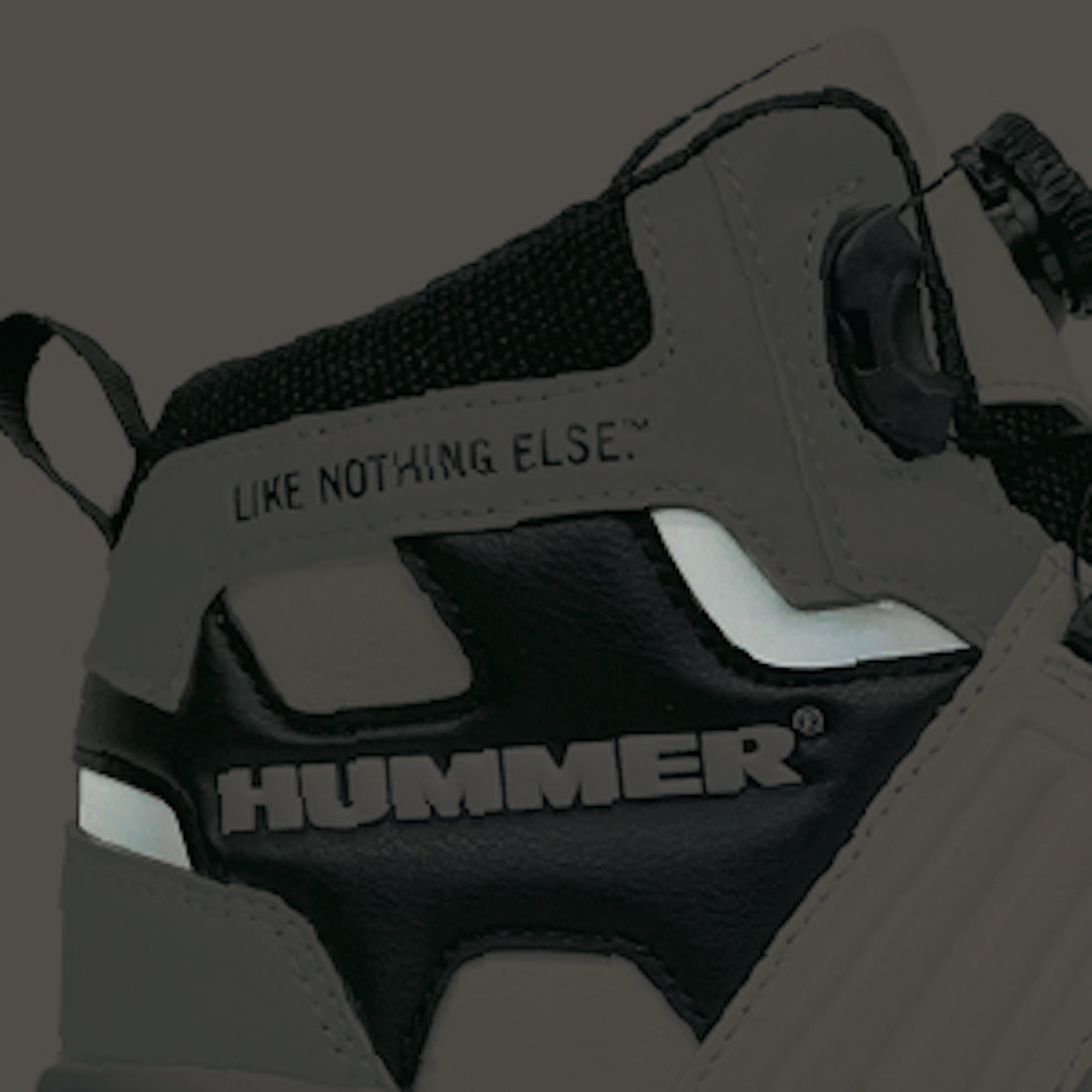 ◇SUVブランドの「HUMMER」をイメージしたワークシューズ、ミドルカットタイプ