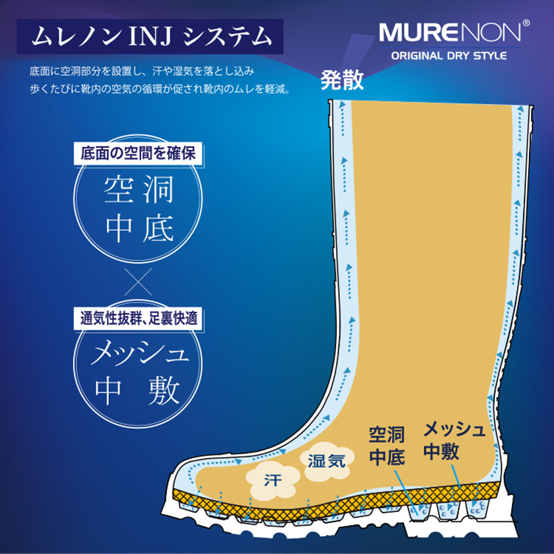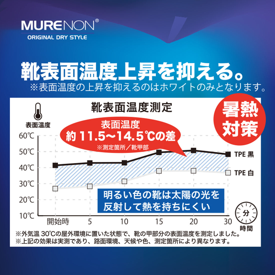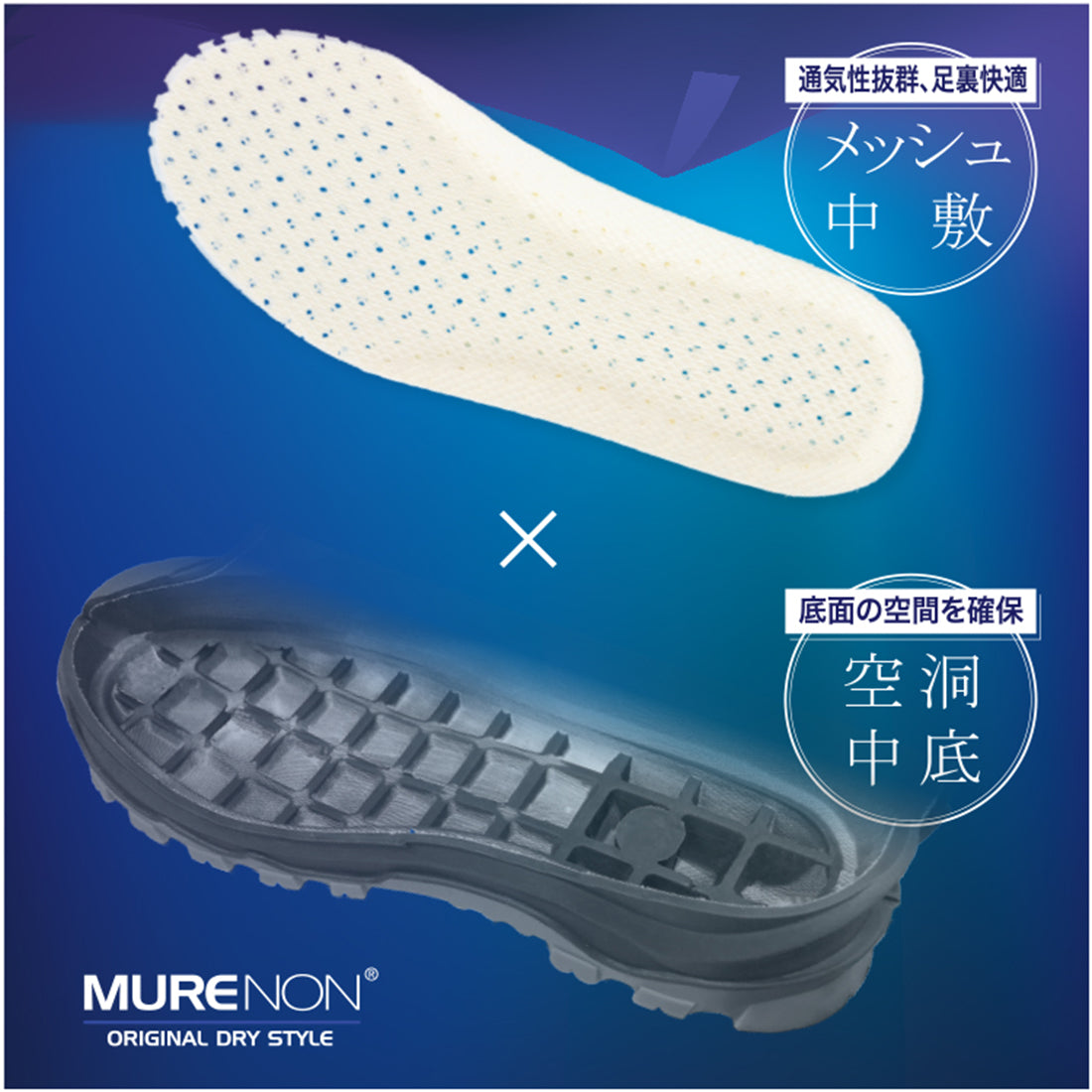 靴底に空洞部分を作る事で空気の循環が生まれ、靴内のムレが軽減される「ムレノン」シリーズ!
